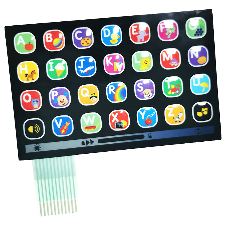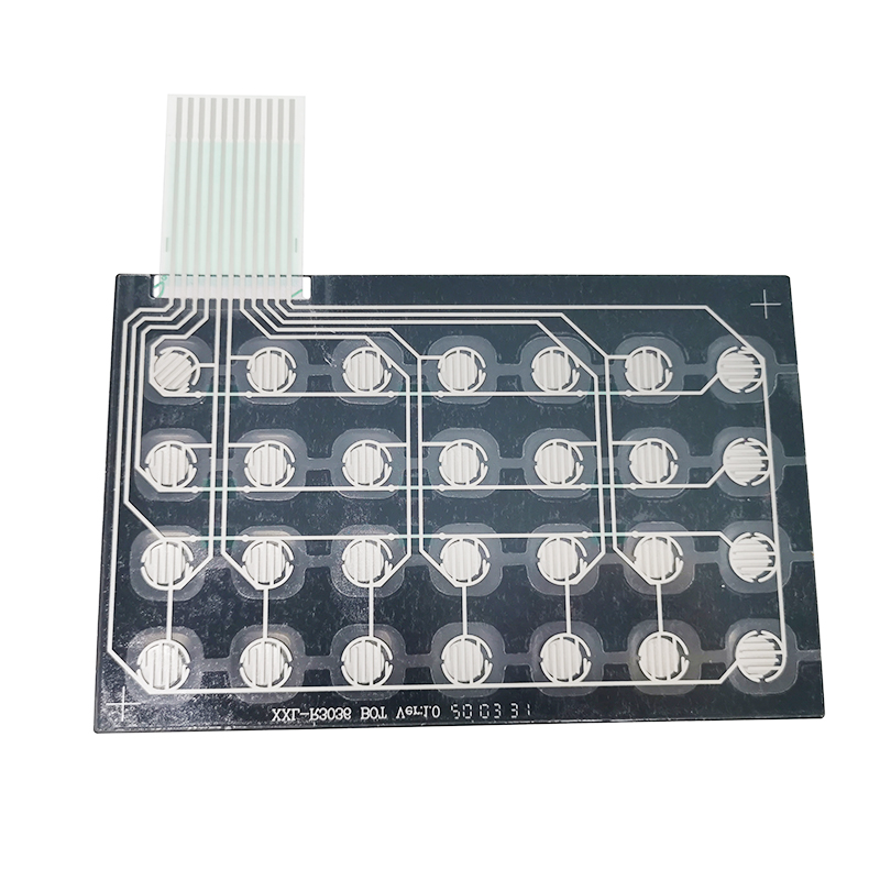 薄膜按健是一小块带接触点的PET片材(包含轻金属弹片也叫锅仔片),用在pcb线路板、fpc柔性线路板等线路板上做为按键开关应用,在操作者与仪器设备两者之间实现一种至关重要的触控型按键开关的功效。与传统式的硅胶按键相比较,薄膜按键具备更加好的触感、更长的使用寿命,能够间接地提升应用导电膜的各类型按键开关的生产效率。薄膜按键上的接触点位于pcb线路板板上的导电位置(绝大多数位于线路板上的金手指上方),当按键受到外力按压时,接触点的中心点下凹,接触到pcb线路板上的线路,从而形成回路,电流通过,使整个产品能够得以正常工作。